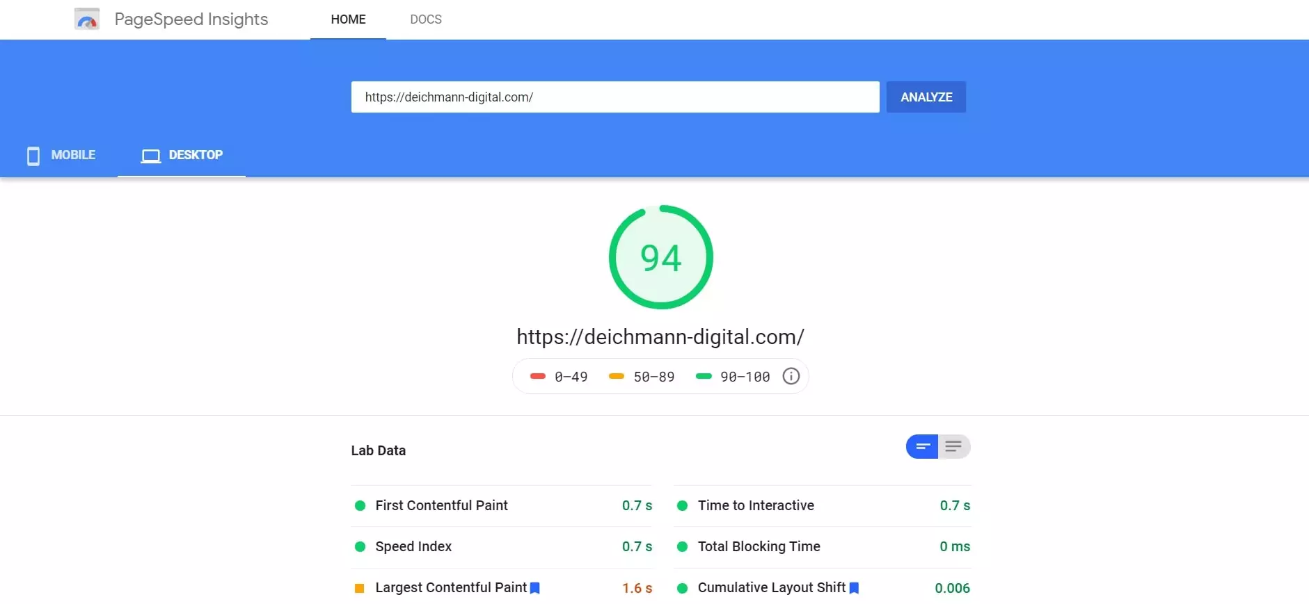 A fast website creates a great user experience and helps SEO. After our pagespeed improvements, the Google PageSpeed Insights gives a score of 94 on desktop.